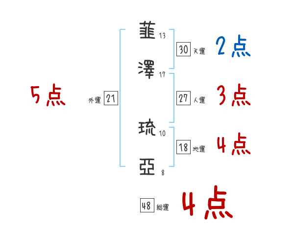韮澤琉亞さんの画数の鑑定結果