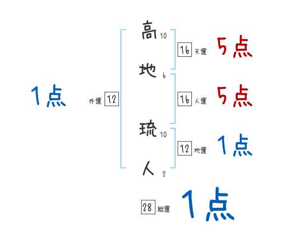 高地琉人さんの画数の鑑定結果