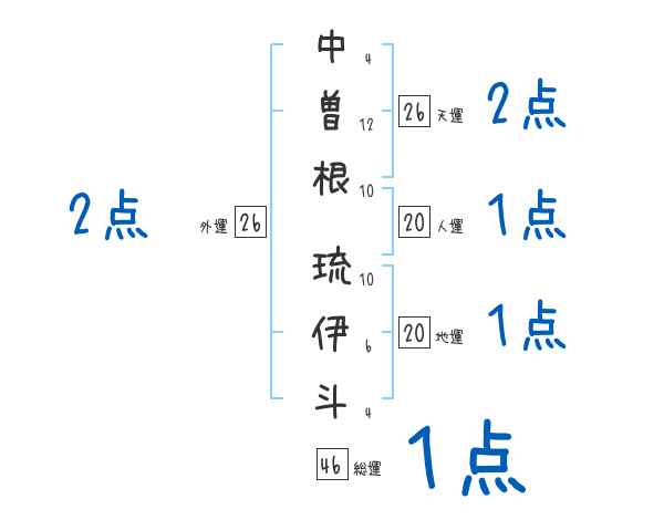 中曽根琉伊斗さんの画数の鑑定結果
