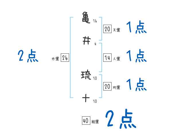 外運![]() | 亀井琉十さんの外運は26画の2つ星!波瀾万丈かも。信頼できる人を大事にしましょう。 生活面を象徴する運勢です。外部から受ける影響力を表し、結婚運、家庭運や職場、環境への順応性を表します。 |