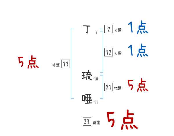 総運![]() | 丁琉唖さんの総運は23画の5つ星!想像力に優れ活力がある。一代で成功し名誉を手に入れる。 あなたの人生を表す1番重要な運勢です。生涯を通じて影響する総合運となり、主に50歳以降の晩年期に影響を及ぼします。 |
