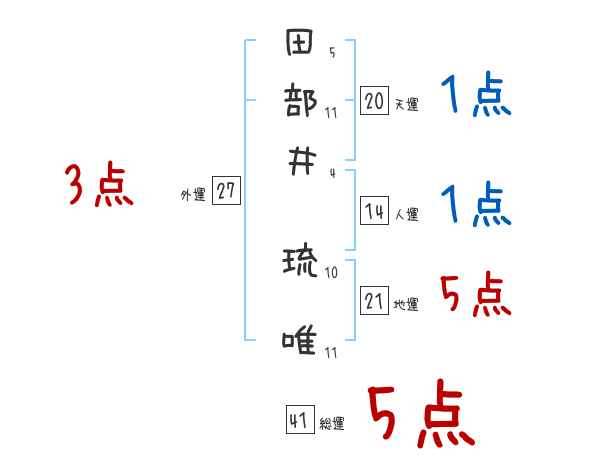田部井琉唯さんの画数の鑑定結果
