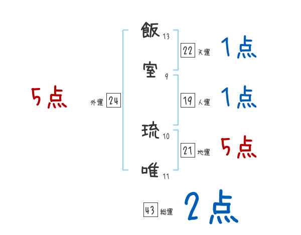 飯室琉唯さんの画数の鑑定結果