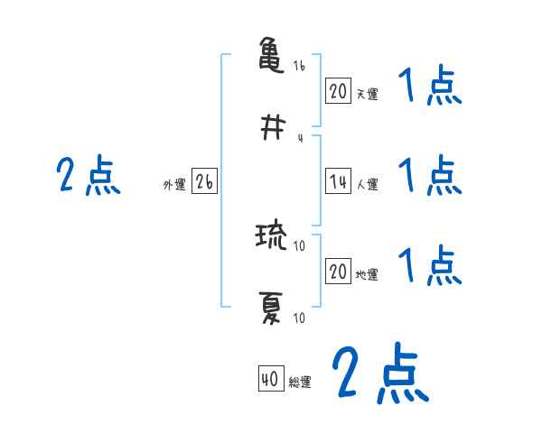 亀井琉夏さんの画数の鑑定結果