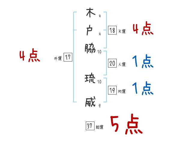 天運![]() | 木戸脇琉威さんの天運は18画の4つ星!情熱的で剛気。忍耐力があり信頼される。 家系が持つ宿命的な運勢を表します。祖先から受け継いだ苗字ですので自分の力が及びません。家柄を象徴します。 |