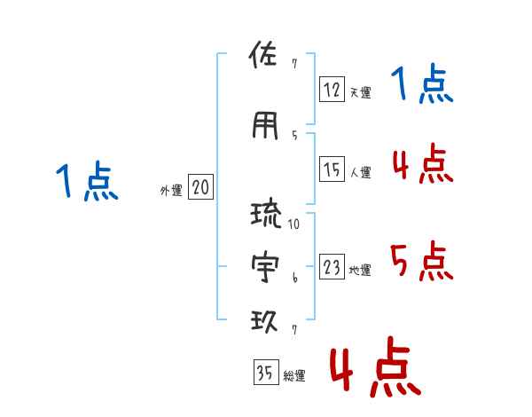佐用琉宇玖さんの画数の鑑定結果