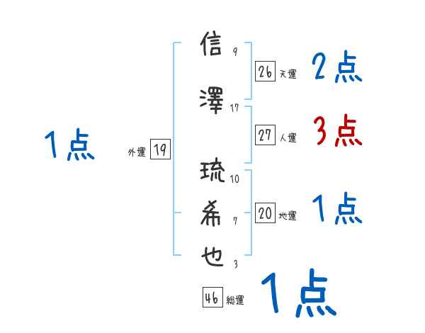 信澤琉希也さんの画数の鑑定結果