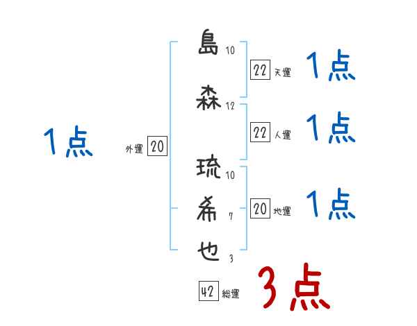 島森琉希也さんの画数の鑑定結果
