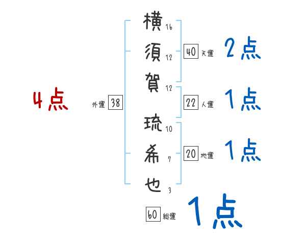 横須賀琉希也さんの画数の鑑定結果