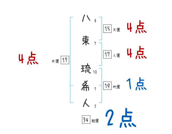外運![]() | 八束琉希人さんの外運は17画の4つ星!積極的な行動力。地位を気づき財産を手に入れる。純粋な心と直感力。 生活面を象徴する運勢です。外部から受ける影響力を表し、結婚運、家庭運や職場、環境への順応性を表します。 |