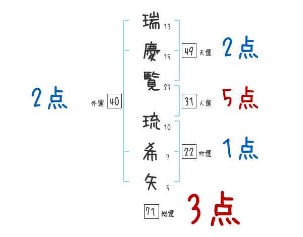瑞慶覧琉希矢さんの画数の鑑定結果