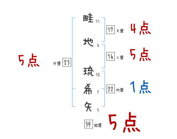 人運![]() | 畦地琉希矢さんの人運は16画の5つ星!人望が厚く大きく発展する。逆転成功が見える。 性格や才能などを表す2番目に重要な運勢です。人間関係や協調性、社会的な成功に影響します。主に20歳から50歳ぐらいまでの中年期の運勢を表します。 |