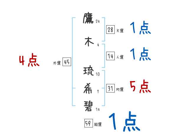 鷹木琉希碧さんの画数の鑑定結果