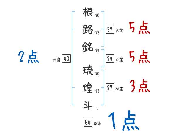 根路銘琉煌斗さんの画数の鑑定結果