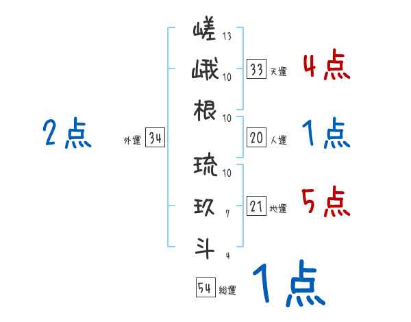 嵯峨根琉玖斗さんの画数の鑑定結果