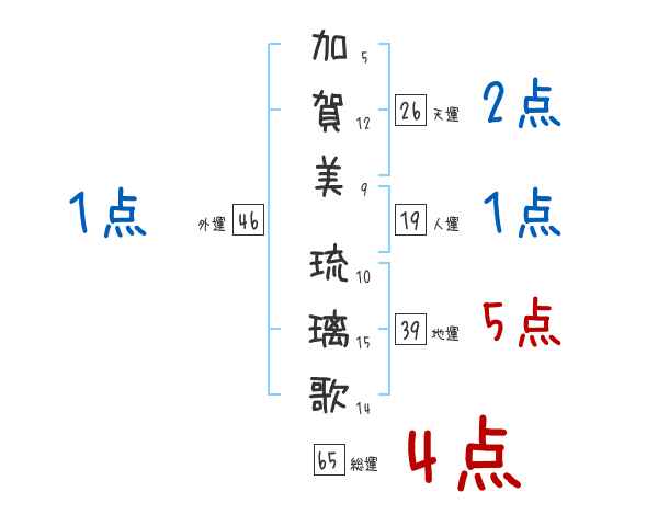 加賀美琉璃歌さんの画数の鑑定結果