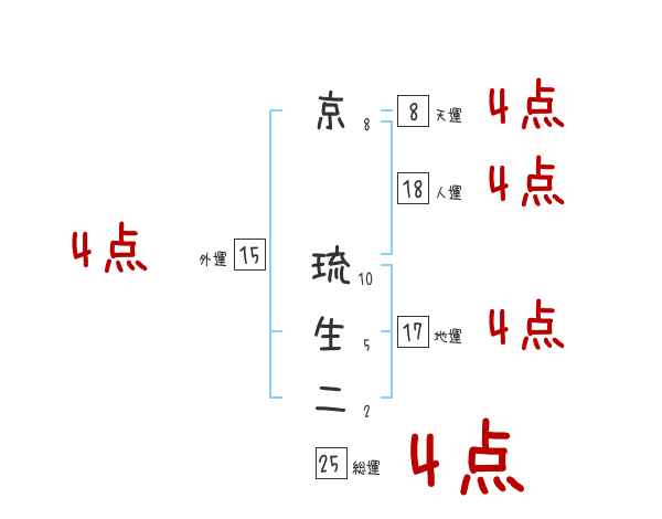 京琉生二さんの画数の鑑定結果
