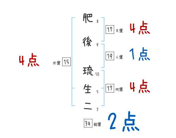 肥後琉生二さんの画数の鑑定結果