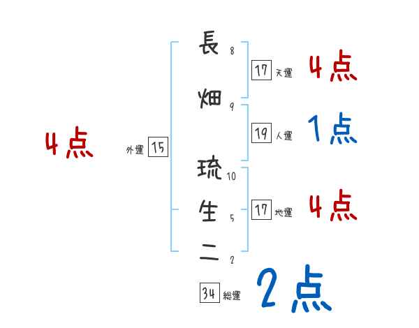 家系が持つ宿命的な運勢を表します。祖先から受け継いだ苗字ですので自分の力が及びません。家柄を象徴します。