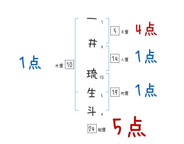 一井琉生斗さんの画数の鑑定結果