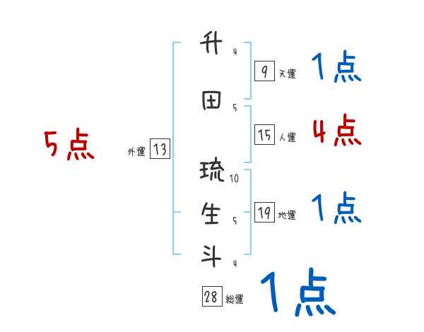 総運![]() | 升田琉生斗さんの総運は28画の1つ星!家庭環境に注意。スポーツで活躍できる能力があるかも。 あなたの人生を表す1番重要な運勢です。生涯を通じて影響する総合運となり、主に50歳以降の晩年期に影響を及ぼします。 |