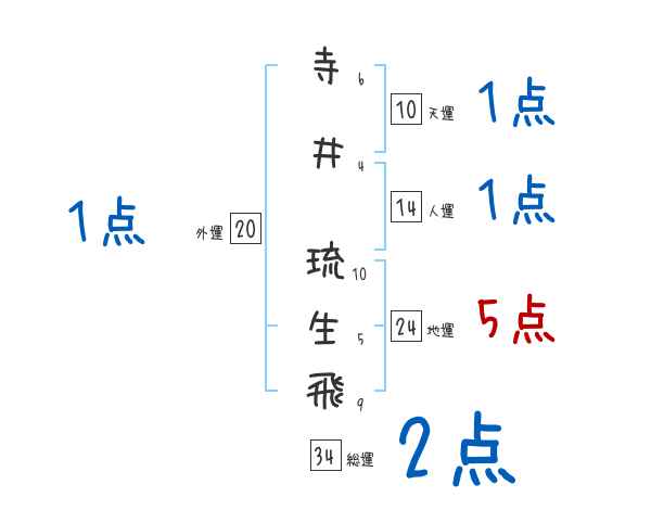 寺井琉生飛さんの画数の鑑定結果