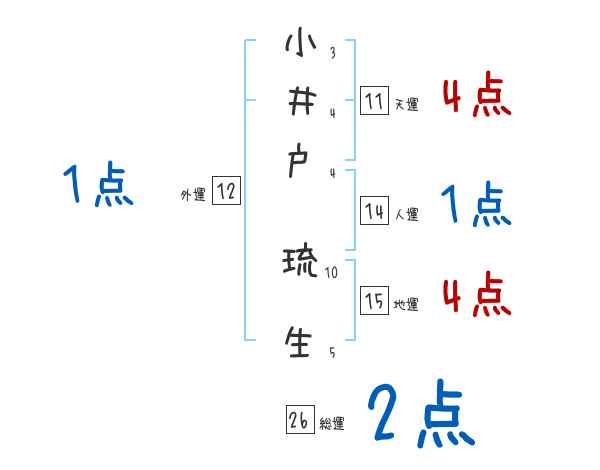 小井戸琉生さんの画数の鑑定結果