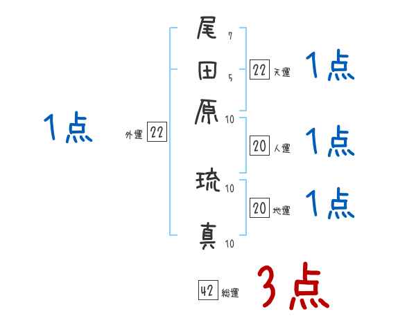尾田原琉真さんの画数の鑑定結果