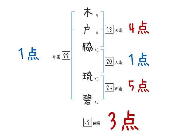 天運![]() | 木戸脇琉碧さんの天運は18画の4つ星!情熱的で剛気。忍耐力があり信頼される。 家系が持つ宿命的な運勢を表します。祖先から受け継いだ苗字ですので自分の力が及びません。家柄を象徴します。 |