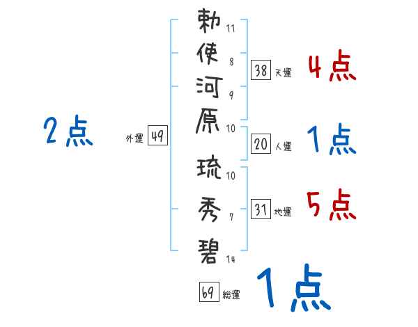 勅使河原琉秀碧さんの画数の鑑定結果