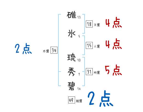 碓氷琉秀碧さんの外運は34画の2つ星