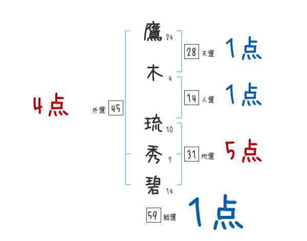 鷹木琉秀碧さんの画数の鑑定結果