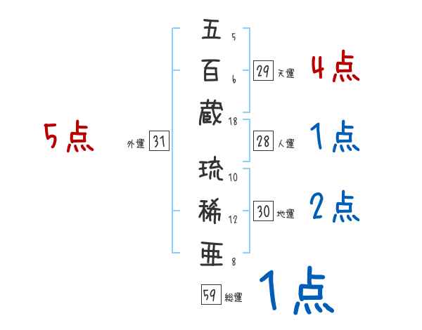 五百蔵琉稀亜さんの外運は31画の5つ星