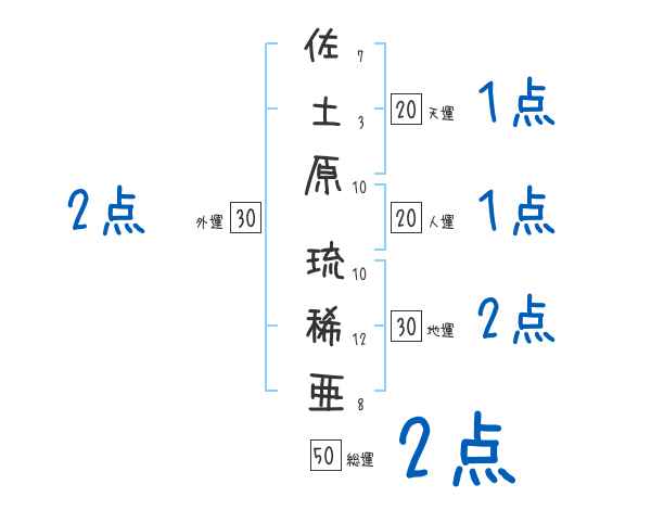 佐土原琉稀亜さんの画数の鑑定結果