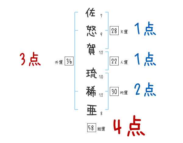 佐怒賀琉稀亜さんの画数の鑑定結果