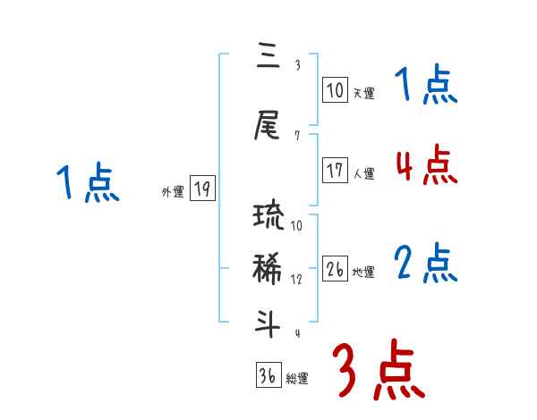 三尾琉稀斗さんの画数の鑑定結果