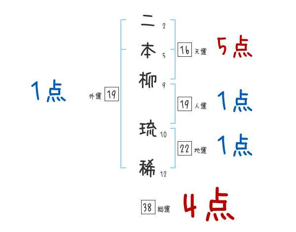 外運![]() | 二本柳琉稀さんの外運は19画の1つ星!優れた才能を持ちますが、協調性が足りないことも。周りの人と協力する事を意識しましょう。 生活面を象徴する運勢です。外部から受ける影響力を表し、結婚運、家庭運や職場、環境への順応性を表します。 |