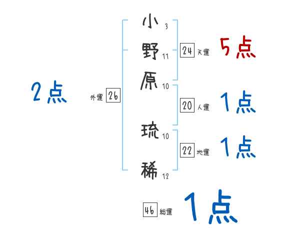 小野原琉稀さんの画数の鑑定結果