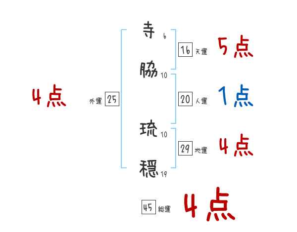 寺脇琉穏さんの画数の鑑定結果