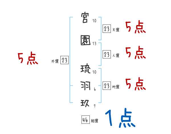 宮園琉羽玖さんの画数の鑑定結果