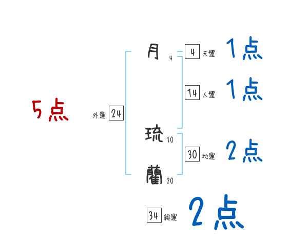 外運![]() | 月琉藺さんの外運は24画の5つ星!家庭運が良く順調な人生。金運にも恵まれる。 生活面を象徴する運勢です。外部から受ける影響力を表し、結婚運、家庭運や職場、環境への順応性を表します。 |