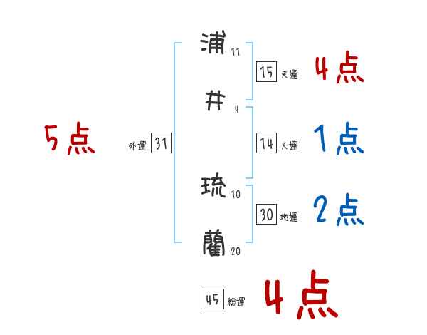 天運![]() | 浦井琉藺さんの天運は15画の4つ星!人徳があり出世する。順調に物事を進め円満な人生。 家系が持つ宿命的な運勢を表します。祖先から受け継いだ苗字ですので自分の力が及びません。家柄を象徴します。 |