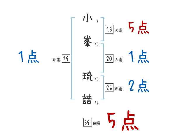 小峯琉諳さんの画数の鑑定結果