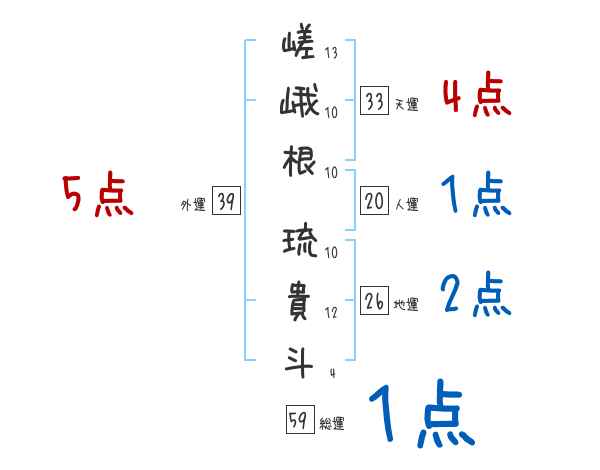 嵯峨根琉貴斗さんの画数の鑑定結果