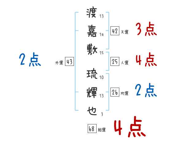 渡嘉敷琉輝也さんの画数の鑑定結果