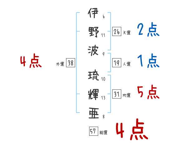 伊野波琉輝亜さんの画数の鑑定結果
