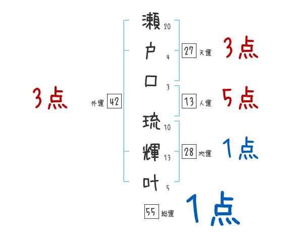 瀬戸口琉輝叶さんの画数の鑑定結果