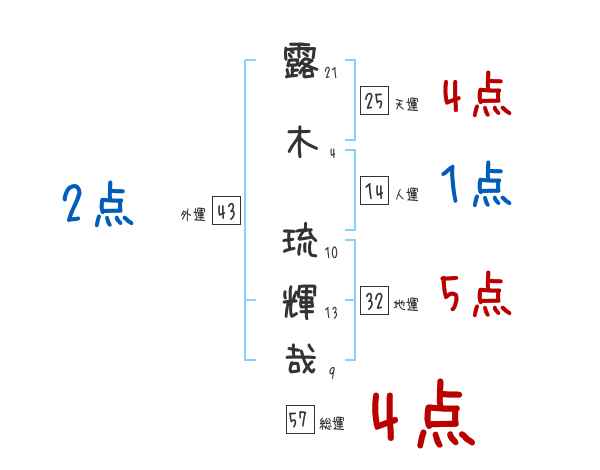 露木琉輝哉さんの画数の鑑定結果