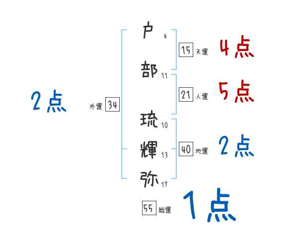外運![]() | 戸部琉輝弥さんの外運は34画の2つ星!独創性に優れるが、自尊心が強く災難に注意しましょう。 生活面を象徴する運勢です。外部から受ける影響力を表し、結婚運、家庭運や職場、環境への順応性を表します。 |