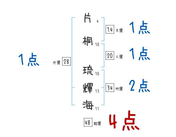 片桐琉輝海さんの画数の鑑定結果